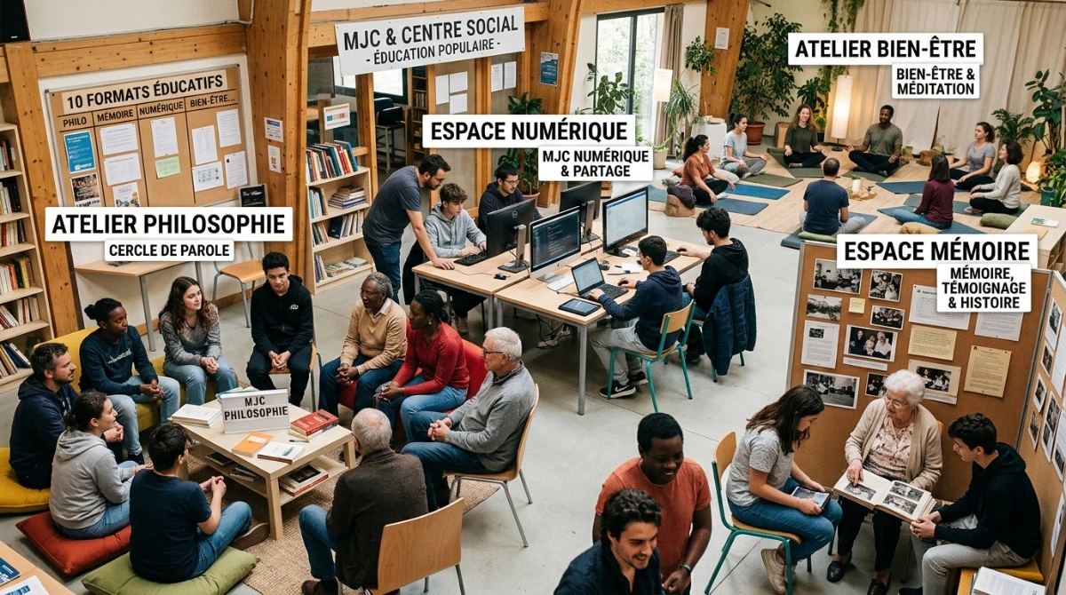Découvrez dix formats éducatifs qui structurent l'apprentissage en MJC et centre social : de la philosophie à la mémoire, en passant par le numérique et le bien-être. Et une grille pour équilibrer votre programmation sur l'année.